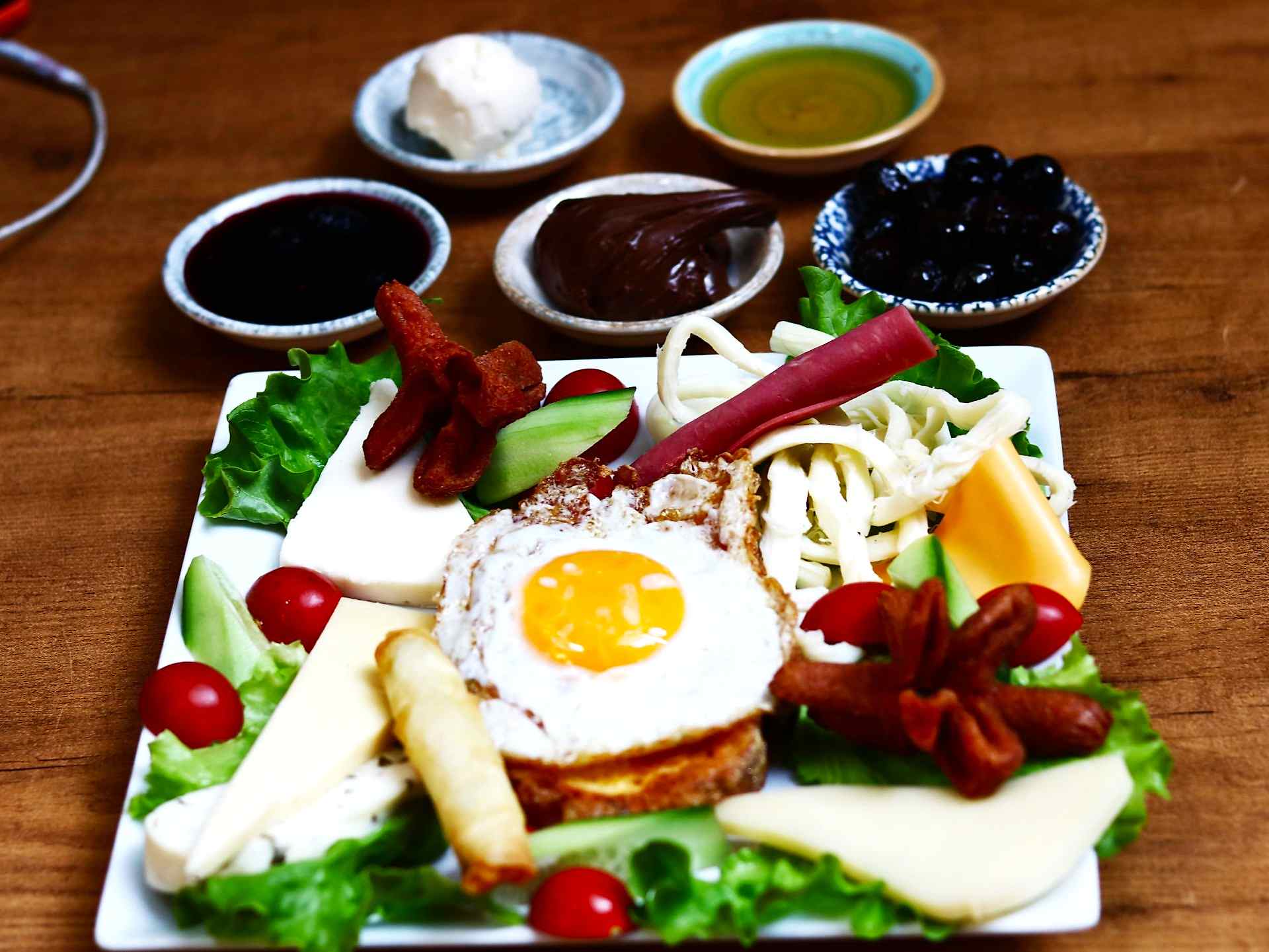 Bal, Nutella, Reçel, Acı Ezme, Kaşar Peyniri, Beyaz Peynir, Eski Kaşar, Siyah Zeytin, Yeşil Zeytin, Sigara Böreği, Haşlanmış Yumurta