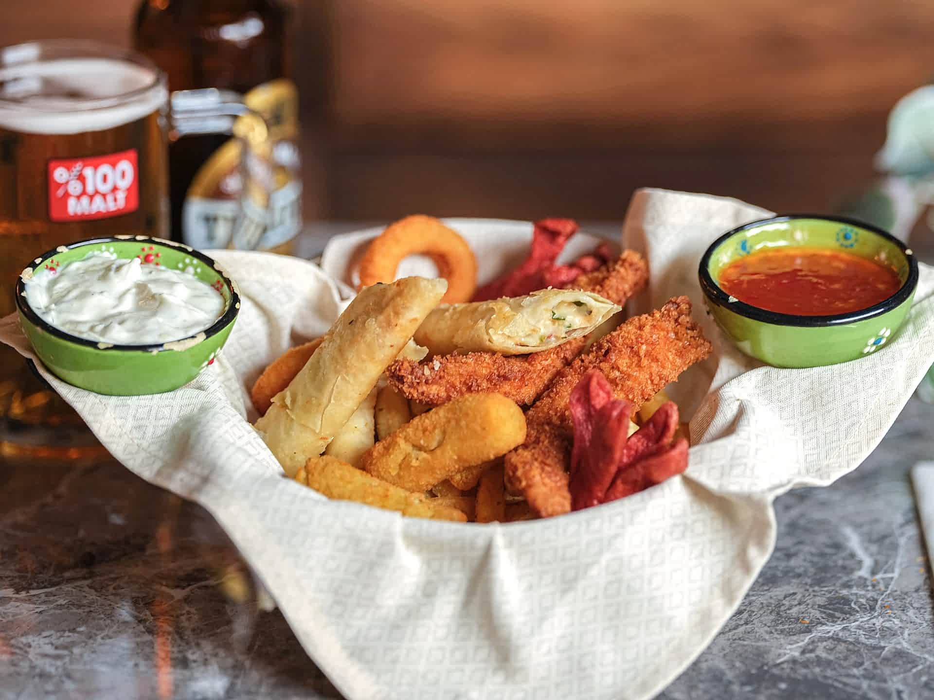 Bal, Nutella, Reçel,tahin,pekmez,Kaşar Peyniri, Beyaz Peynir, Eski Kaşar,otlu peynir,örgü peynir, Sosis,Domates, Siyah Zeytin, Yeşil Zeytin, Salatalık, Sigara Böreği,2 adet pankek, Patates Kızartması, yumurtalı ekmek üzerinde sahanda yumurta, 1 lt termos çay