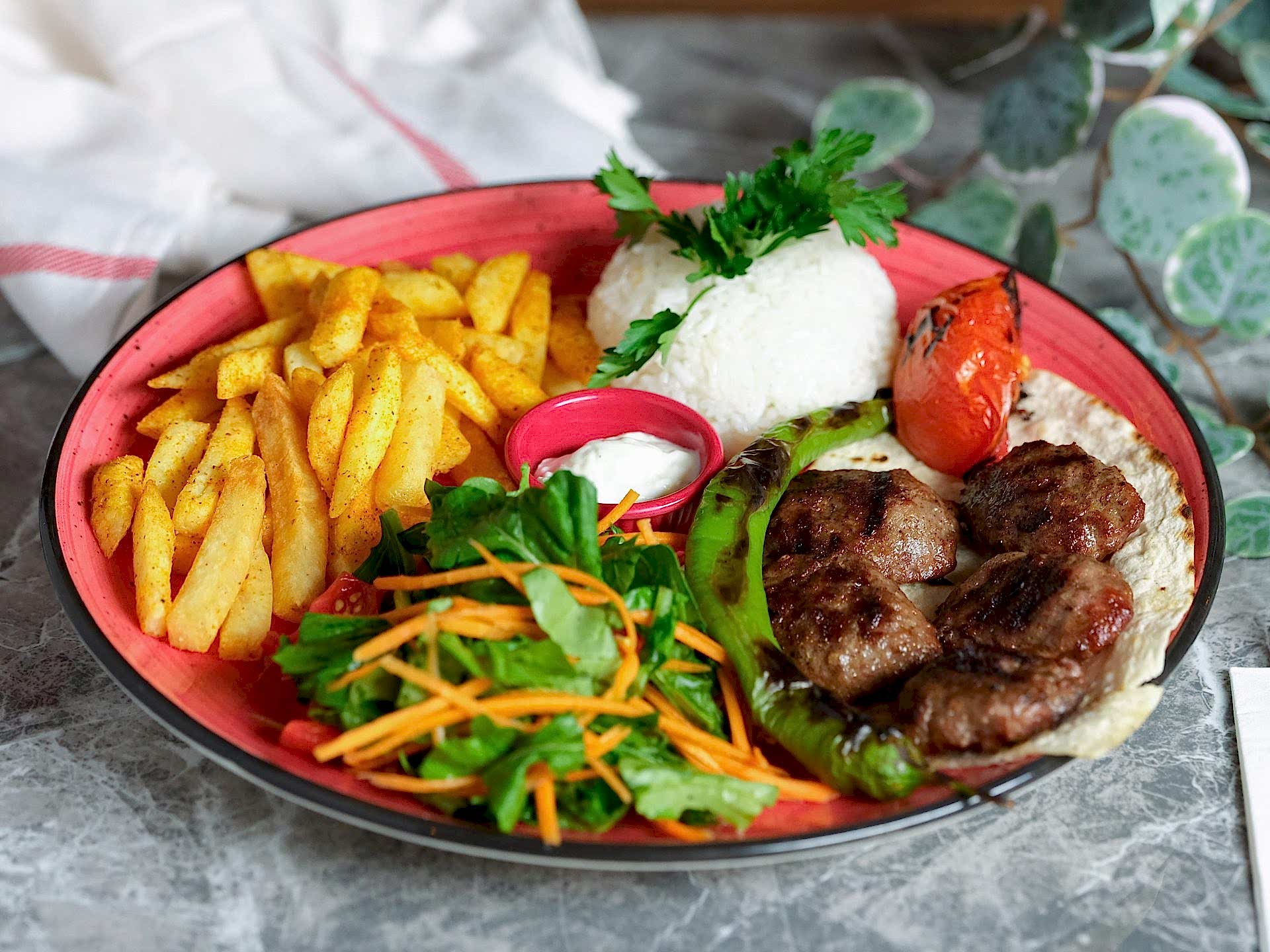 Beyaz Peynir, Yeşillik, Domates, Salatalık, Deep Sos, Patates